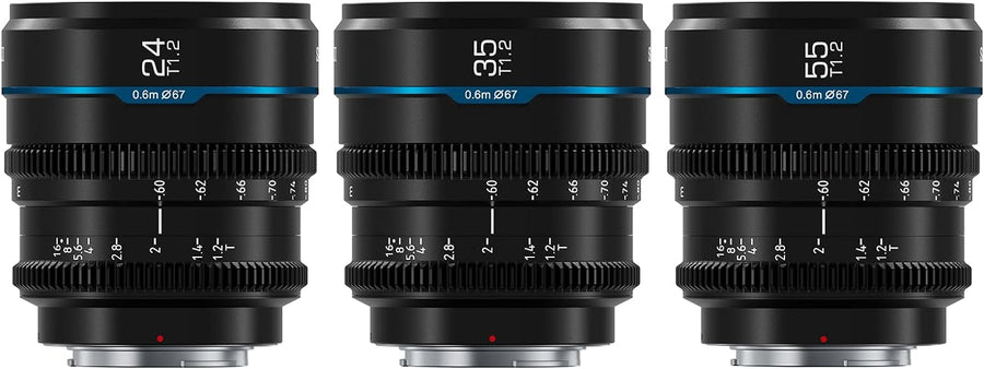 SIRUI Night Walker T1.2 S35 Cine Objektiv-Set, 24 mm, 35 mm, 55 mm, grosse Blende, manueller Fokus (
