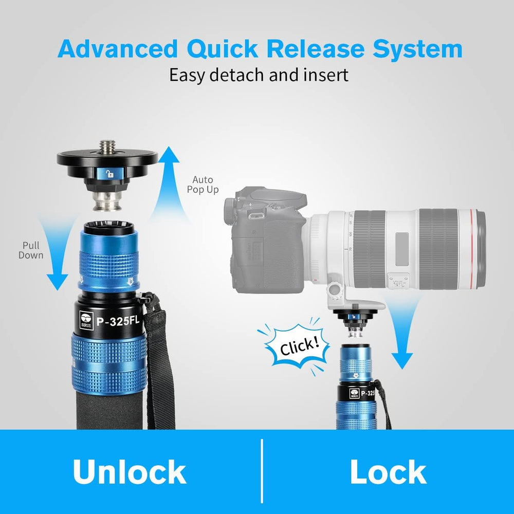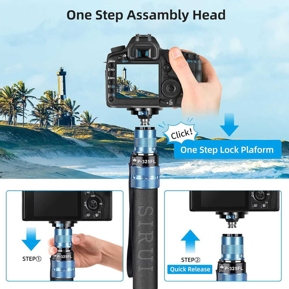 SIRUI P-325FS Carbon Fiber Kamera Video Teleskop Einbeinstativ Monopod kit mit Standfuss 148,3 cm,Le