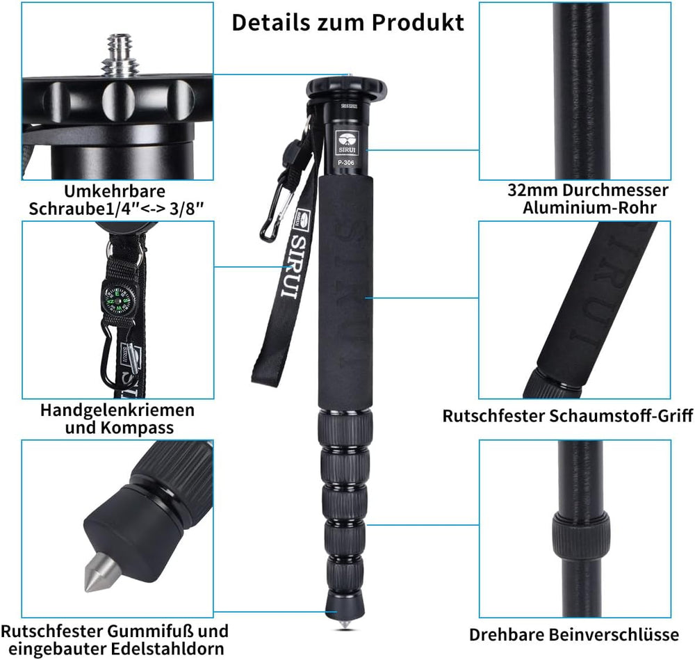 SIRUI P-306 Camera Kamera Reise Einbeinstativ Monopod, Aluminium 0.56kg Einbeinstativ, 6 Sektionen,