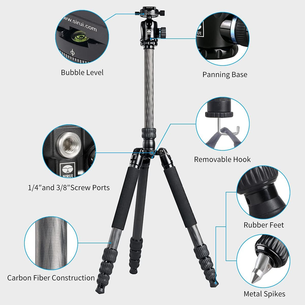 SIRUI MT-2204+MT-20 Professionelles Carbonfaser-Reisestativ mit Kugelkopf für Kameras, Stativ mit Ei
