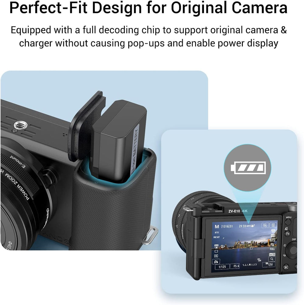 SMALLRIG NP-FW50 Ersatzbatterien (2 Stück) & LCD Display Ladegerät Set, Wiederaufladbarer Akku für S