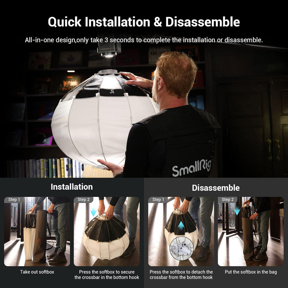 SMALLRIG Laternen Softbox 60cm/26 Zoll, Bowens Mount Softbox mit Klettverschluss Flexible Barndoor T