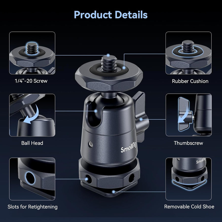 SMALLRIG Mini Ball Head (2er-Pack) mit 1/4"-Schraube und Abnehmbarer Schuhhalterung, 360 Grad drehba
