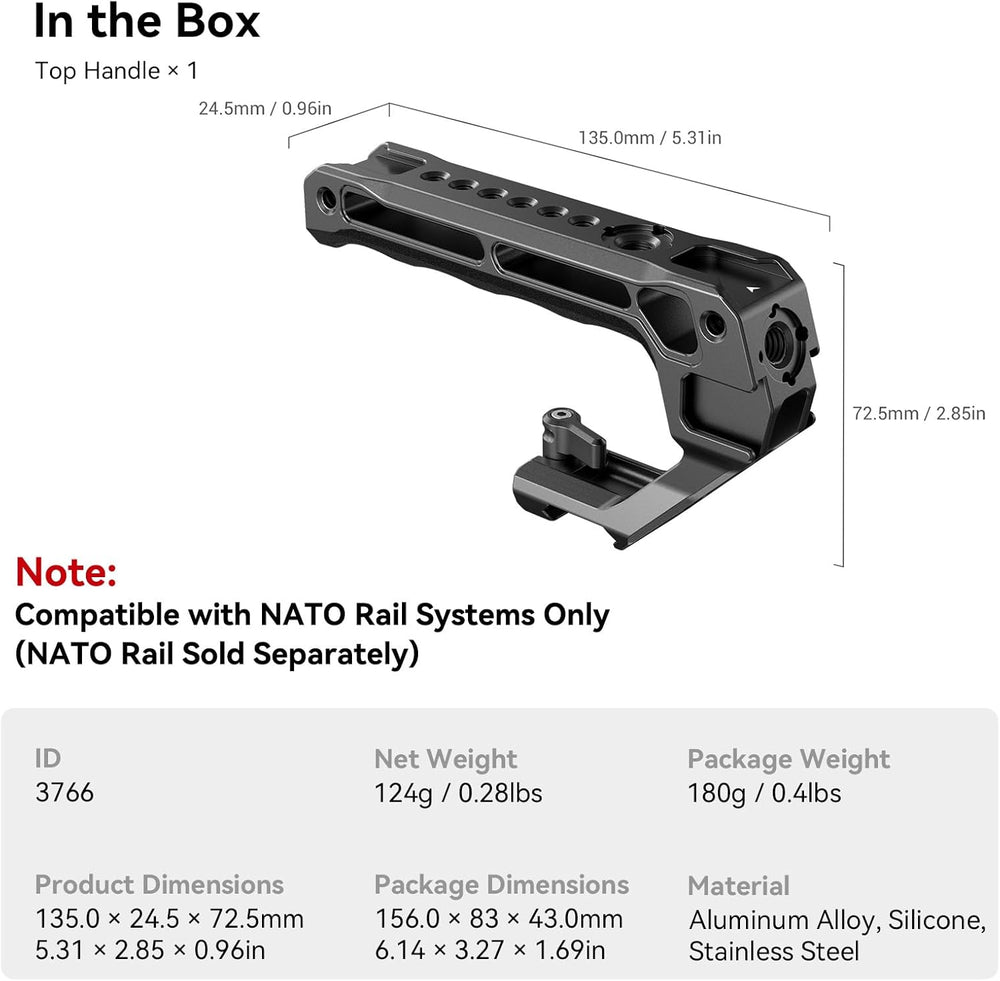 SMALLRIG NATO Top Handle Griff mit Cold Shoe für Kameras, Camcorder, Actionkameras, Kamerakäfig-1955