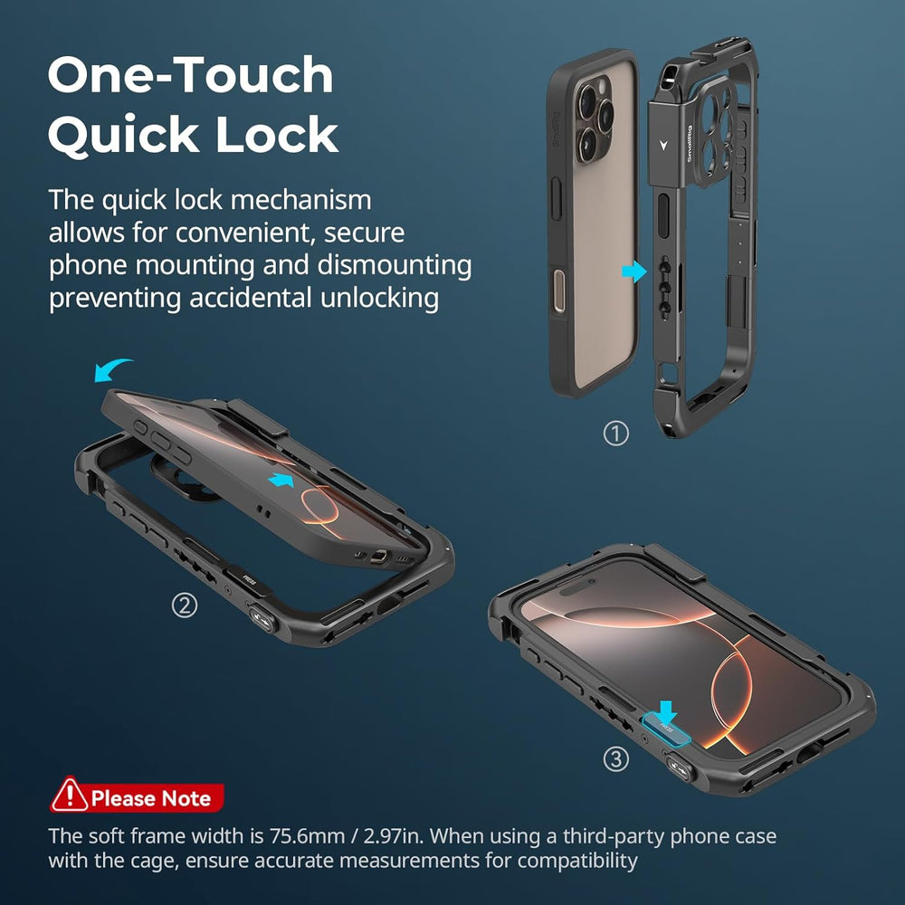 SMALLRIG Mobile Video Cage Basic Edition für iPhone 16 Pro mit speziellem Telefonkäfig mit T-Mount-O