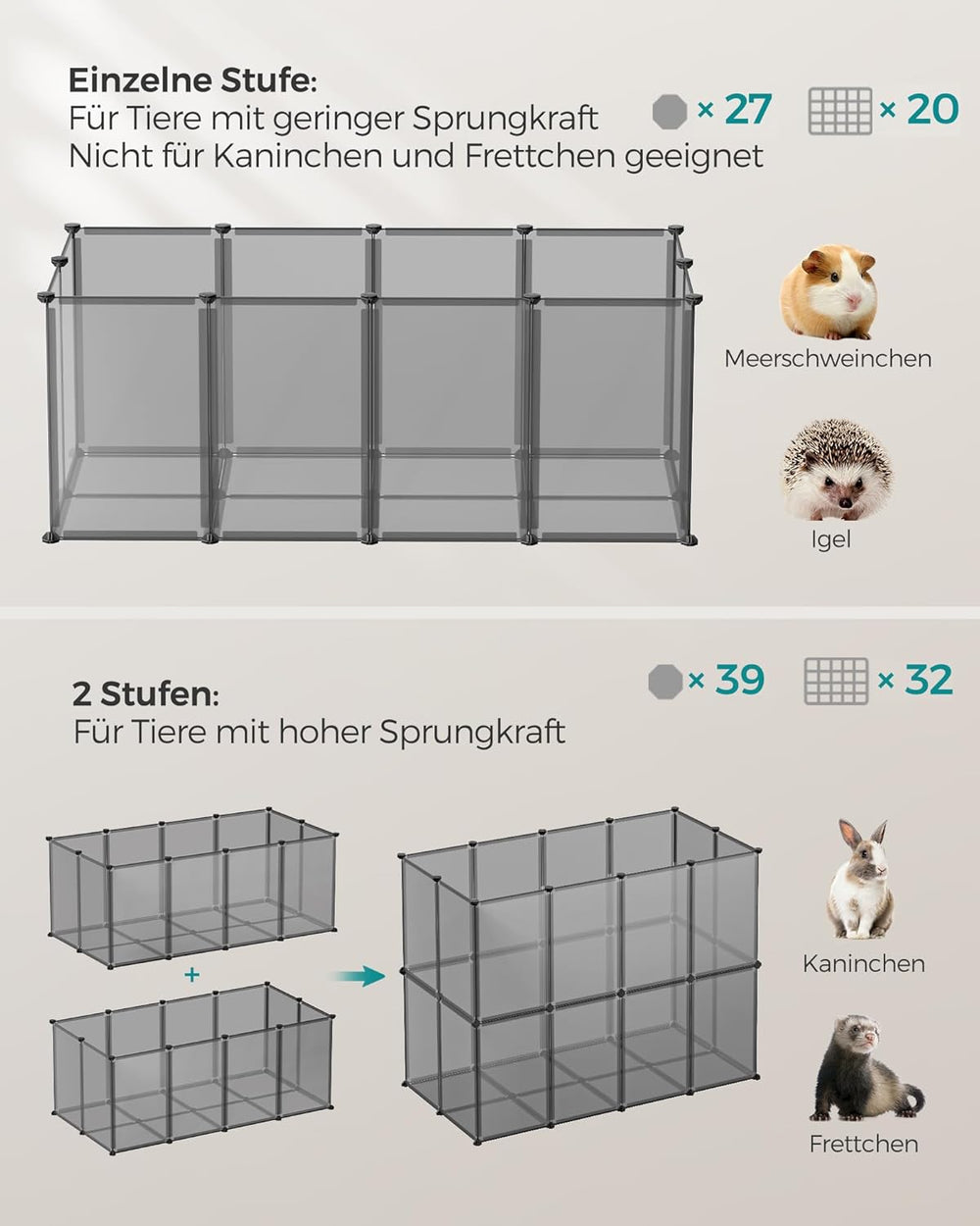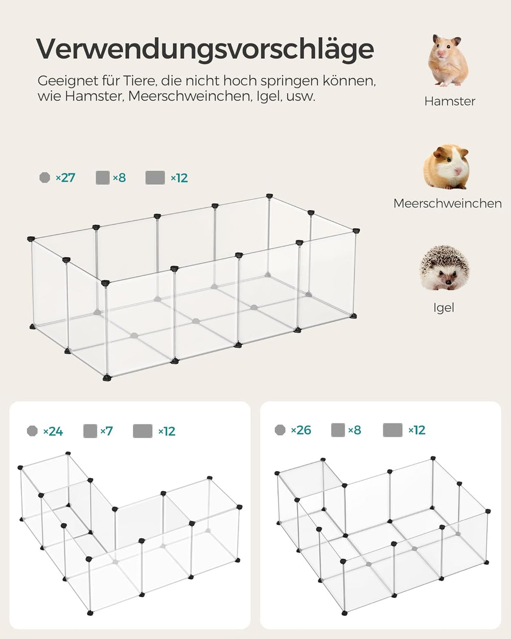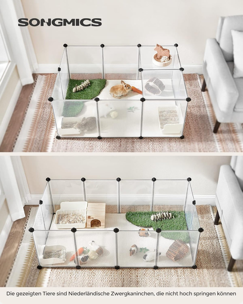 SONGMICS Freilauf, DIY-Kleintiergehege, KleintierkÄfig, Welpenauslauf, Kaninchen, Meerschweinchen, M