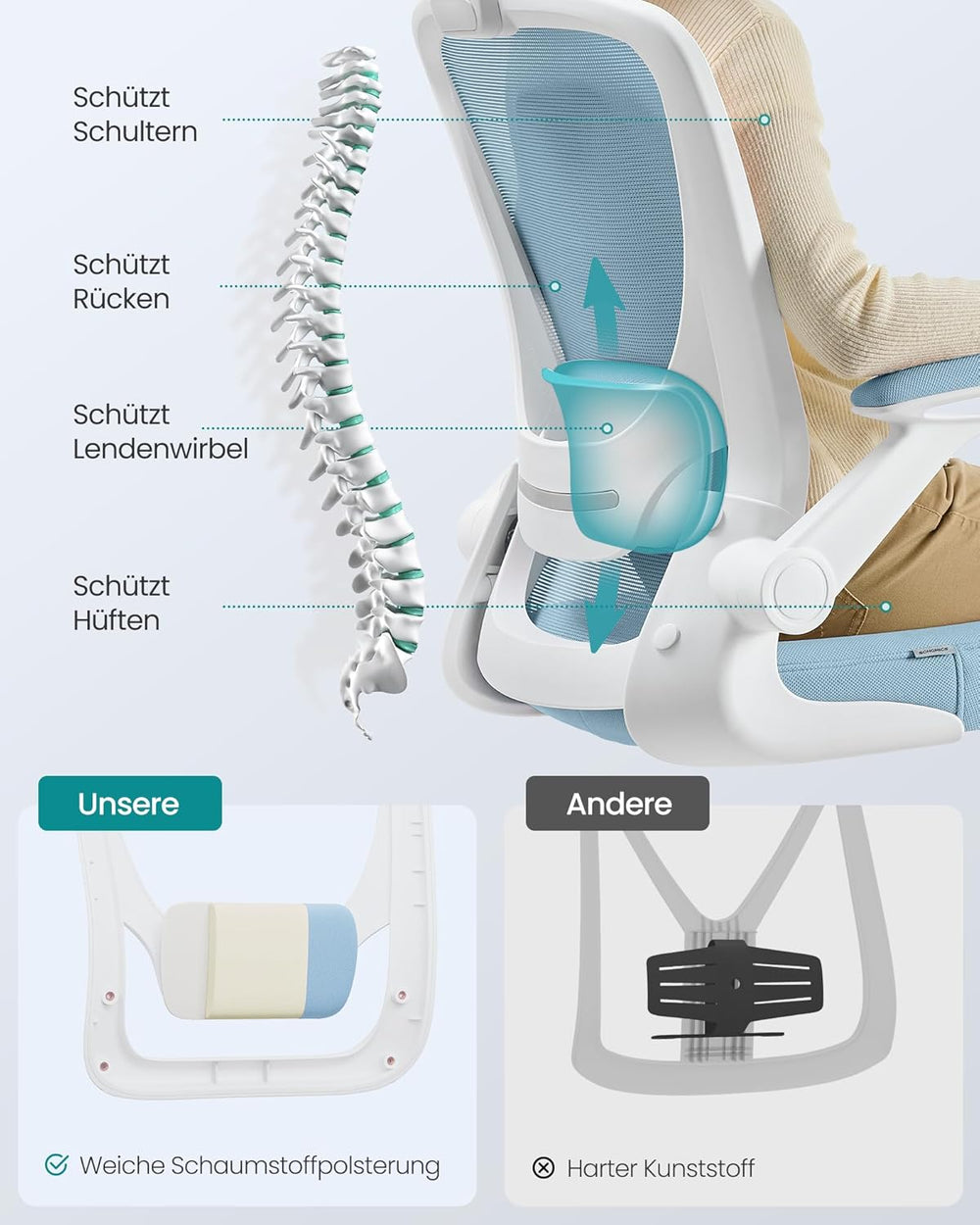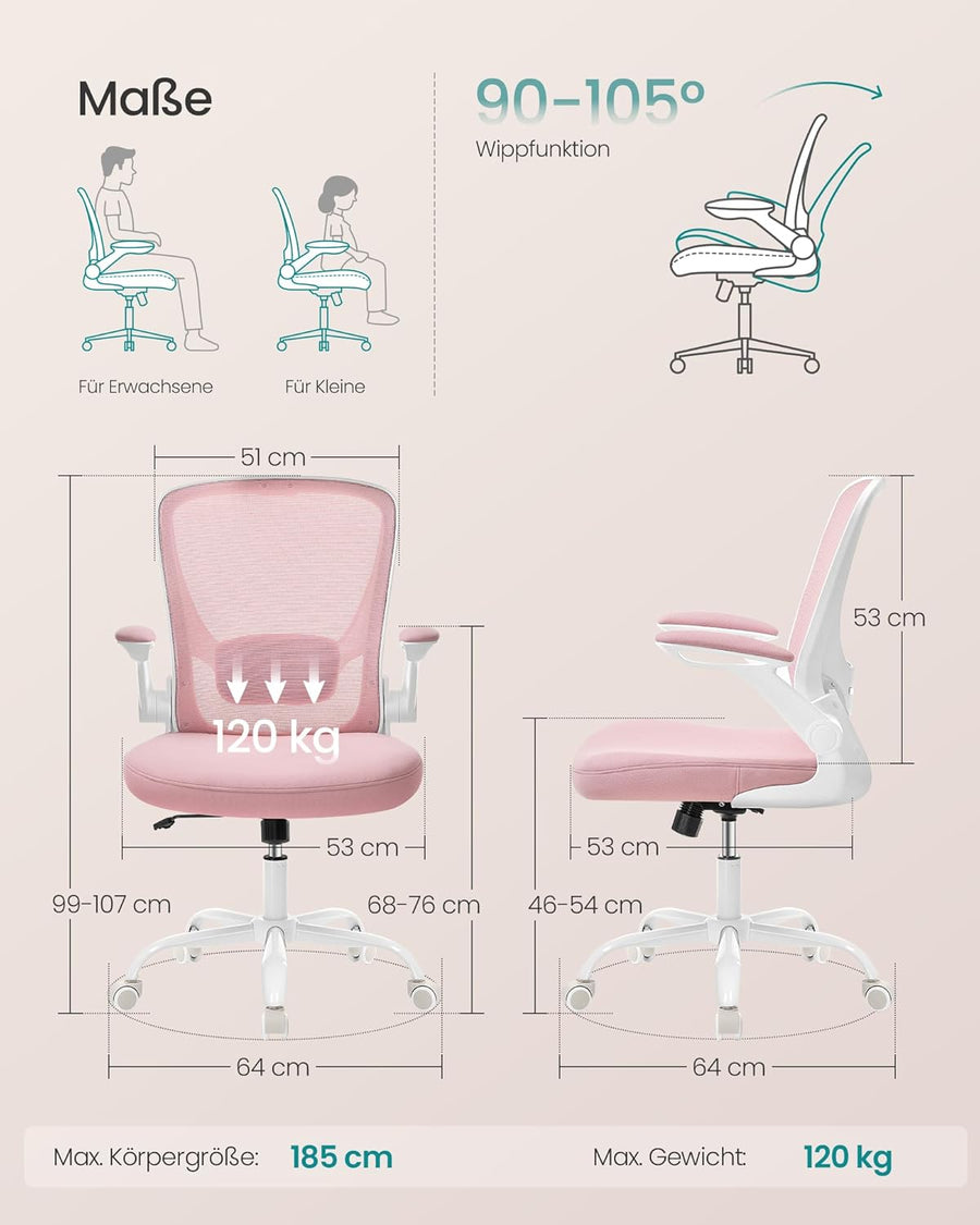 SONGMICS Bürostuhl, Schreibtischstuhl, ergonomische Rückenlehne, höhenverstellbar, hochklappbare Arm