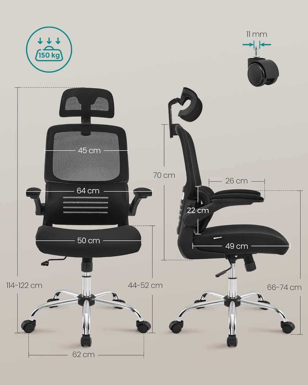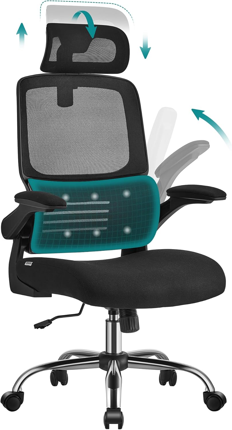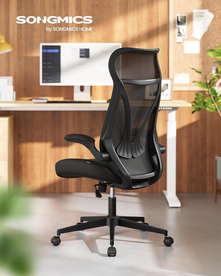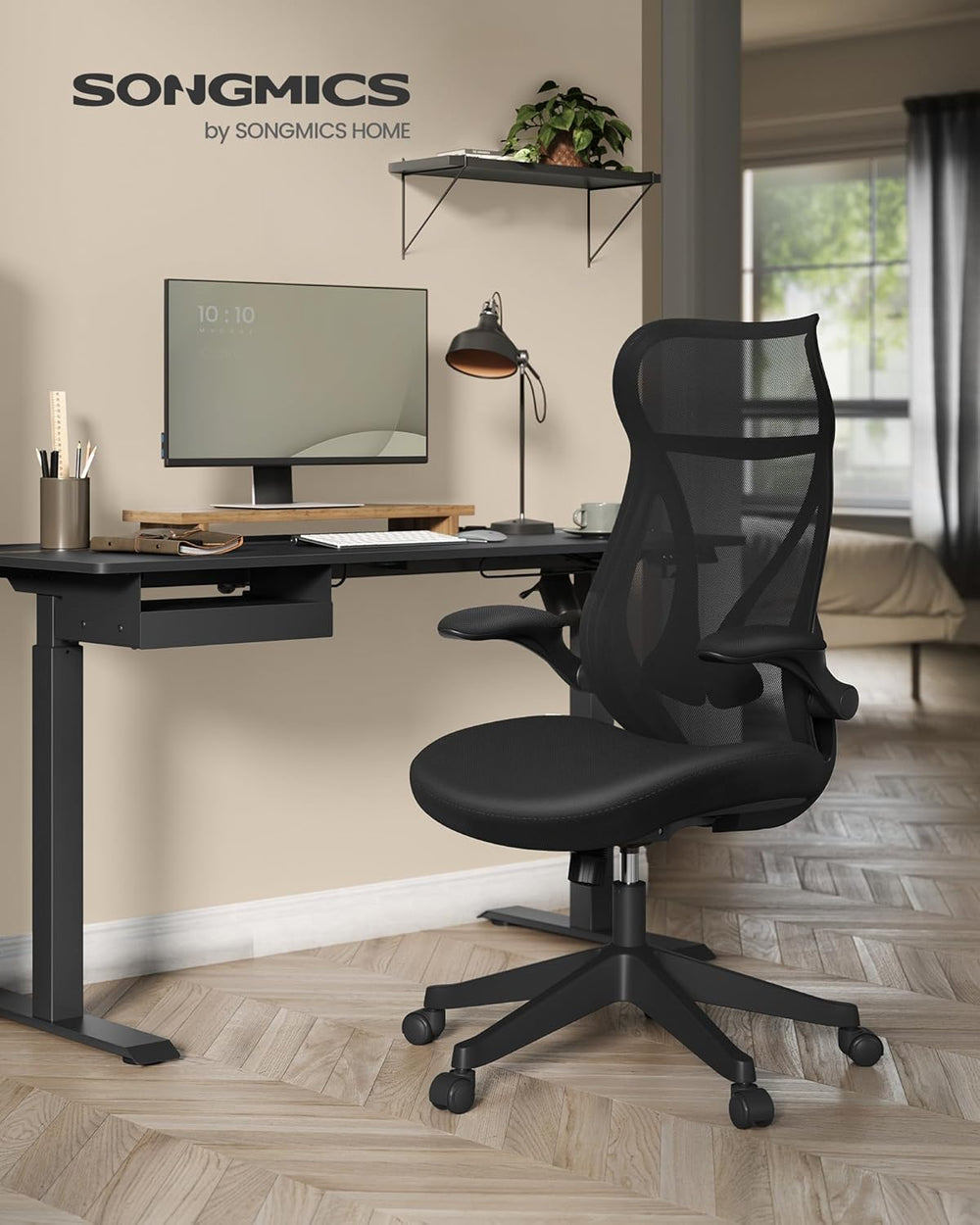 SONGMICS Bürostuhl, Schreibtischstuhl, ergonomisch, klappbare Armlehnen, hohe Rückenlehne, Netzstuhl