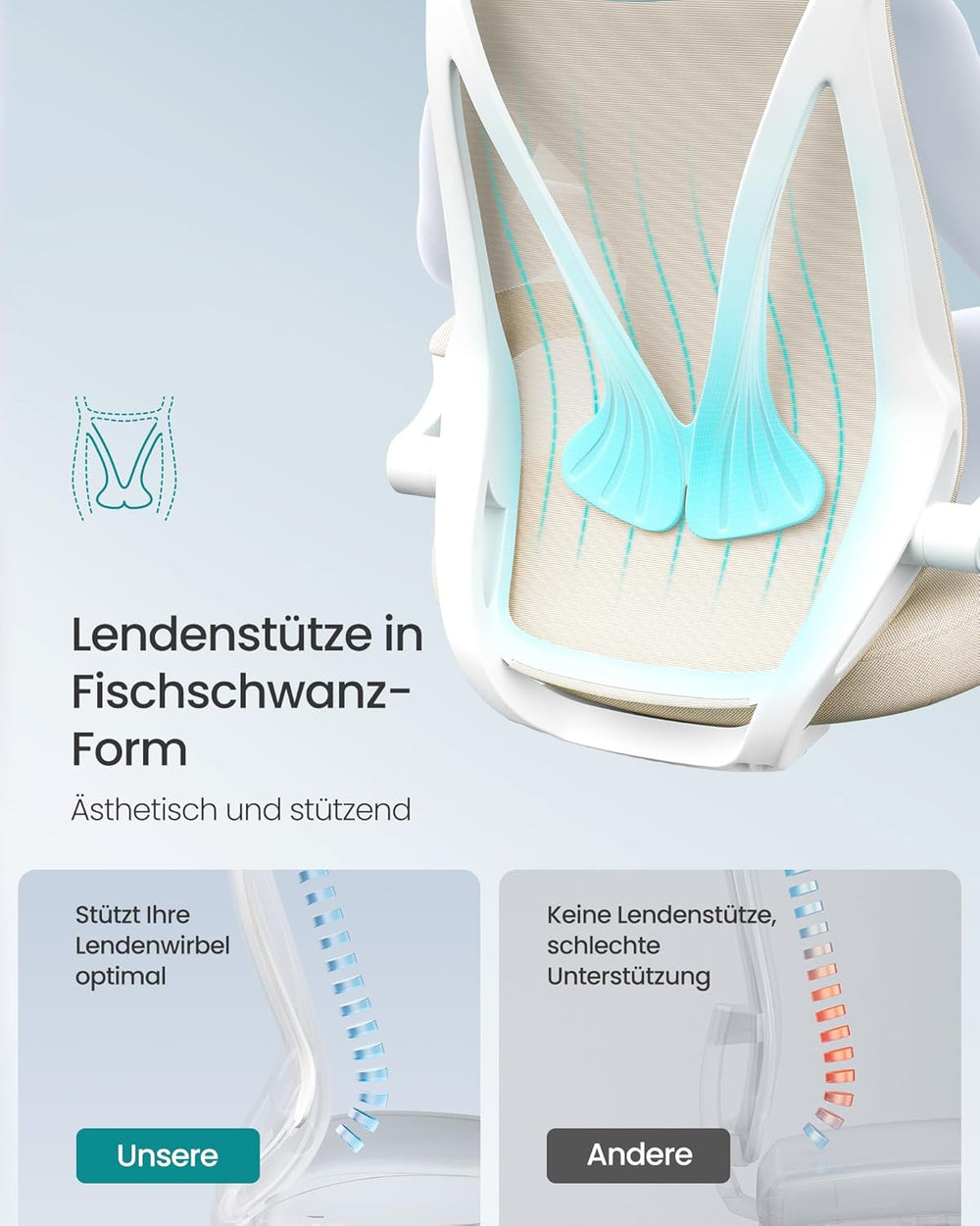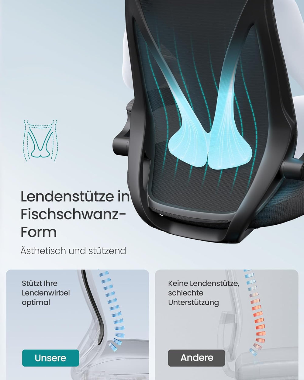 SONGMICS Bürostuhl, Schreibtischstuhl, Drehstuhl mit Netzbespannung, ergonomisch, gepolsterte Lenden