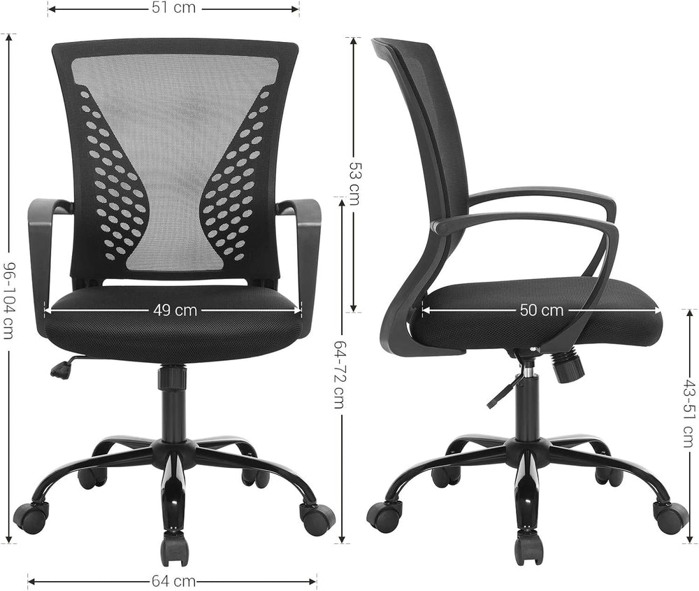 SONGMICS Bürostuhl, Schreibtischstuhl mit Netzbespannung, höhenverstellbarer Computerstuhl, Drehstuh