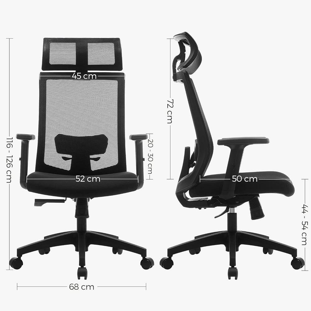 SONGMICS Bürostuhl, Schreibtischstuhl mit Netzbespannung, verstellbare Lendenstütze, Kopfstütze und