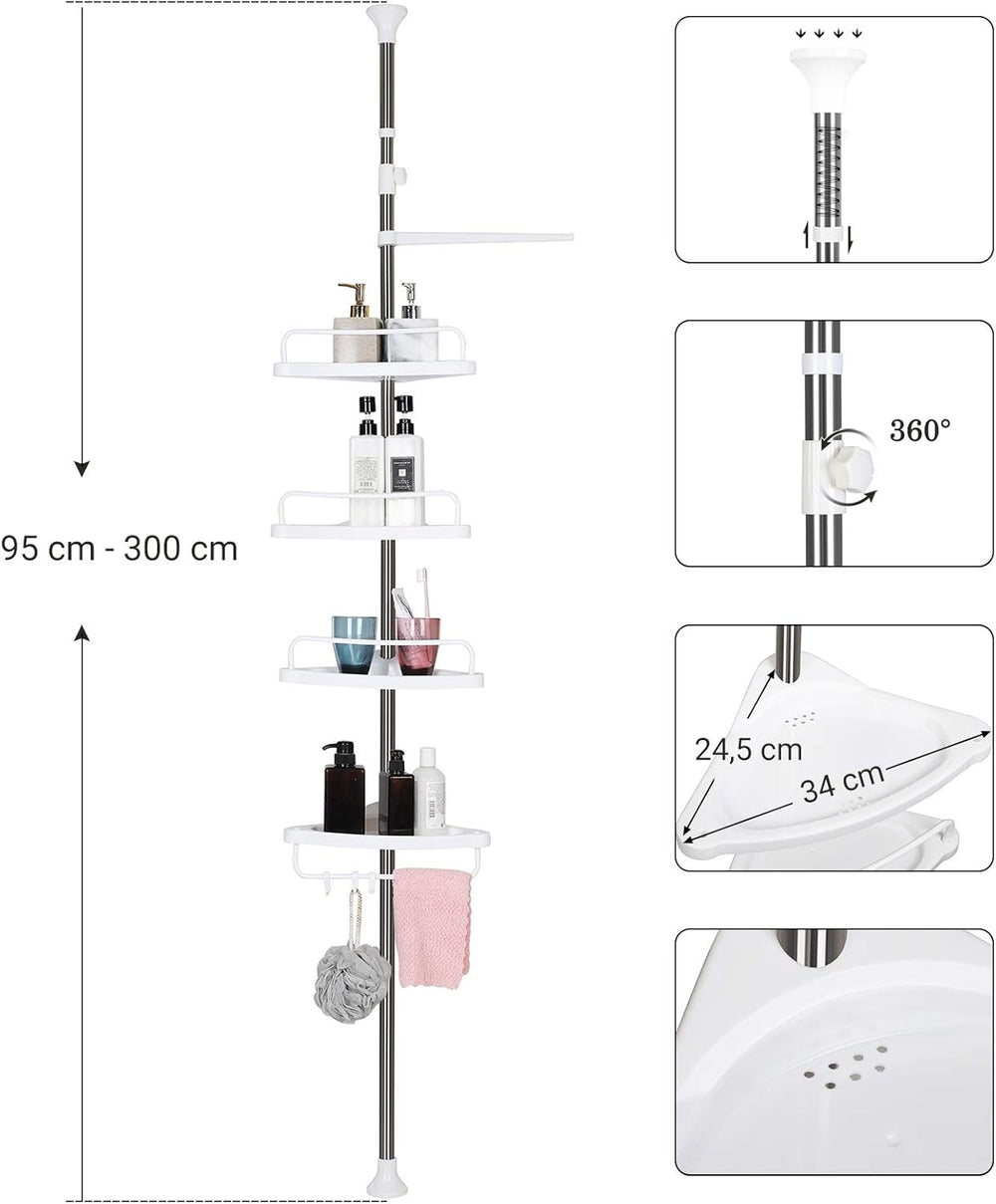 SONGMICS Duschregal höhenverstellbar, Eckregal fürs Badezimmer, Badregal, 95-300 cm, Boden bis Decke