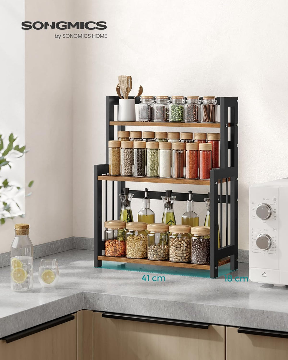 SONGMICS Gewürzregal mit 3 Ebenen, Küchenregal, Aufbewahrungsregal, für Arbeitsplatte, Bambusgestell