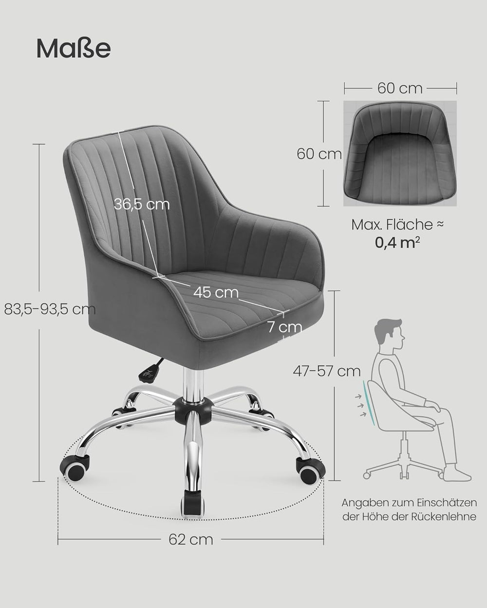 SONGMICS Bürostuhl, Drehstuhl mit Samtbezug, Schaumstoffpolsterung, höhenverstellbar, für Arbeitszim