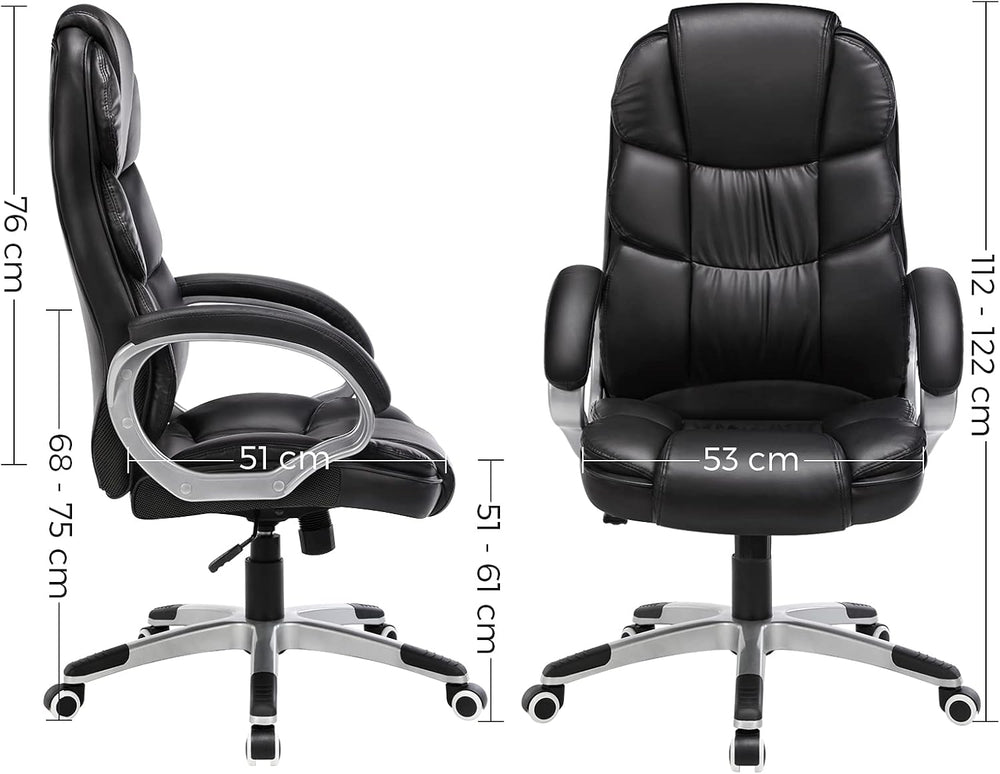 SONGMICS Bürostuhl mit Hoher Rückenlehne, Chefsessel, Schreibtischstuhl, Höhenverstellung, PU, Schwa