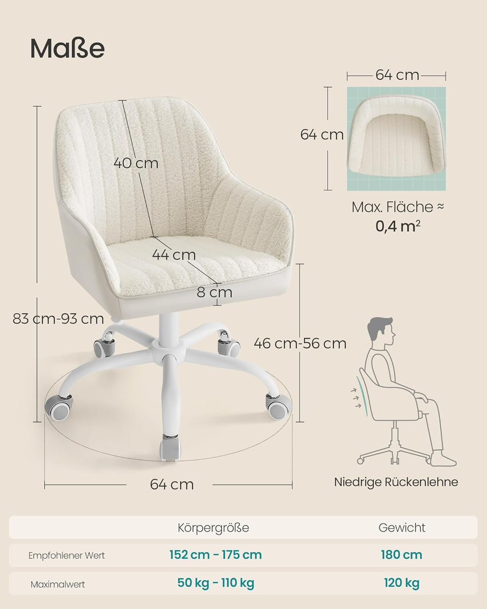 SONGMICS Bürostuhl, Drehstuhl, Sherpa und Kunstleder, Schaumstoffpolsterung, höhenverstellbar, für A