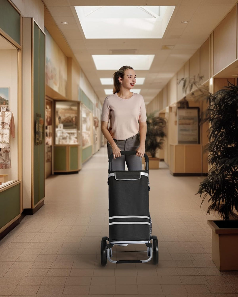 SONGMICS Einkaufstrolley, klappbar, Stabiler Einkaufswagen, mit Kühlfach, grosse Kapazität 35 L, mul