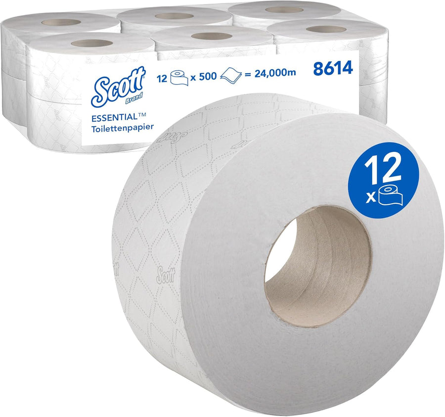 Scott Essential Jumbo Toilettenpapierrollen 8614 – 2-lagiges Toilettenpapier – 12 Rollen mit je 500