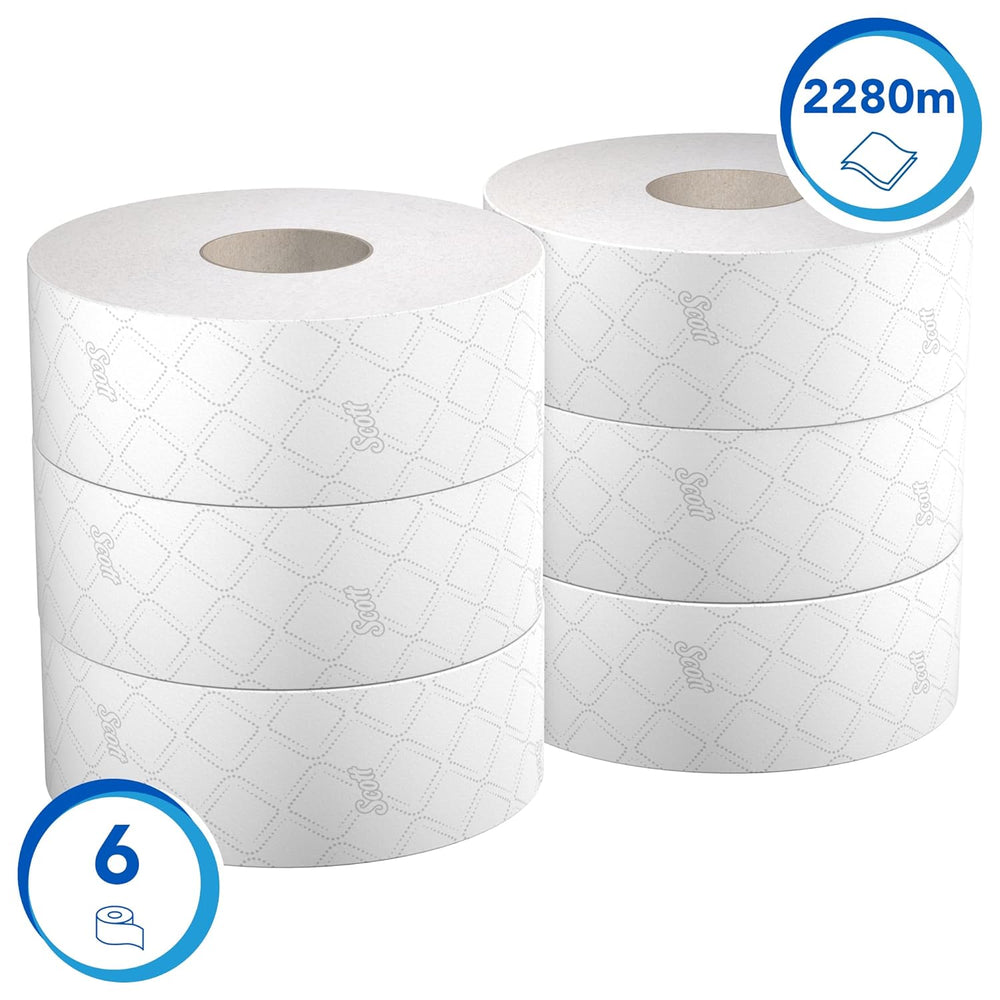 Scott Essential Toilettenpapier, Jumbo Toilettenpapierrolle, 2-lagig, 6 Rollen x 380 m, Weiss, 8511