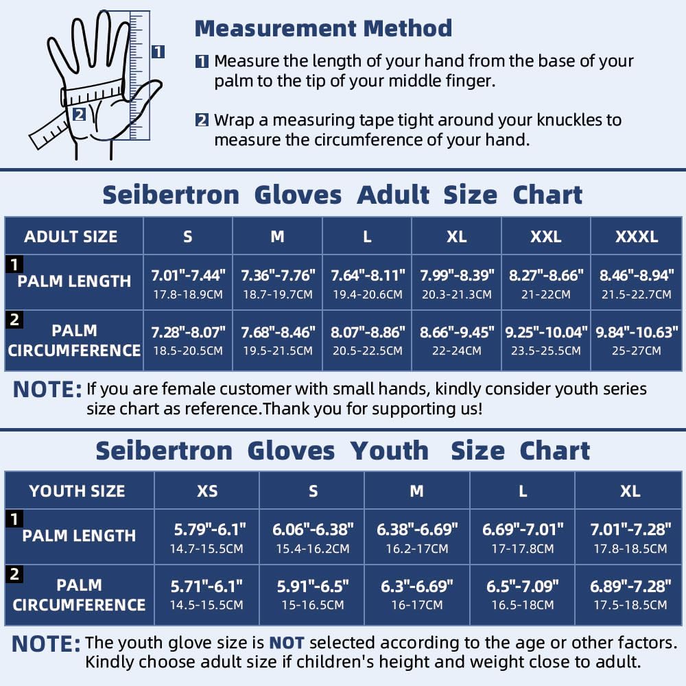 Seibertron S.P.B.G 2.0 Baseball/Softball Schlagmann Batting Super Grip and Protective Handschuhe Glo