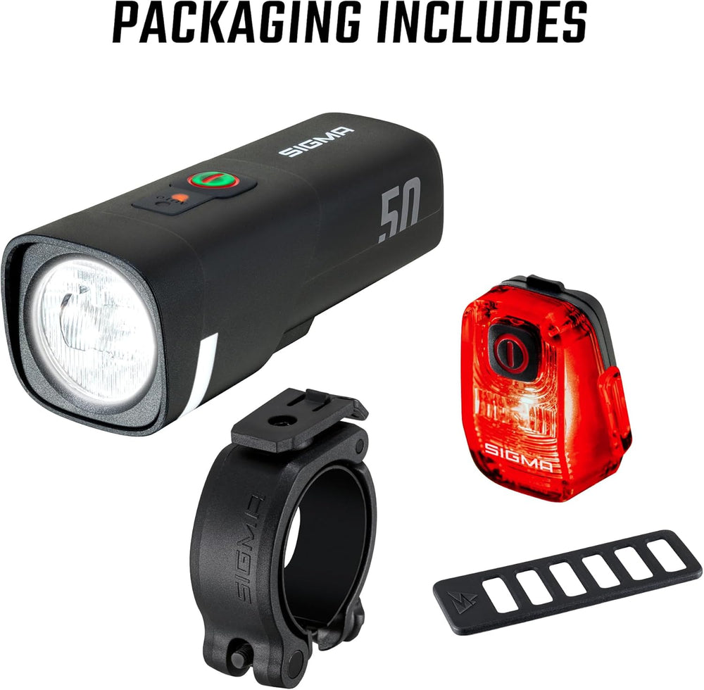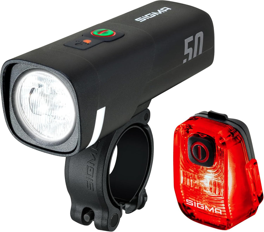 SIGMA LED Fahrradlicht Set Aura 50/ Hiro 10 | StVZO zugelassenes, akkubetriebenes Vorderlicht und Rü