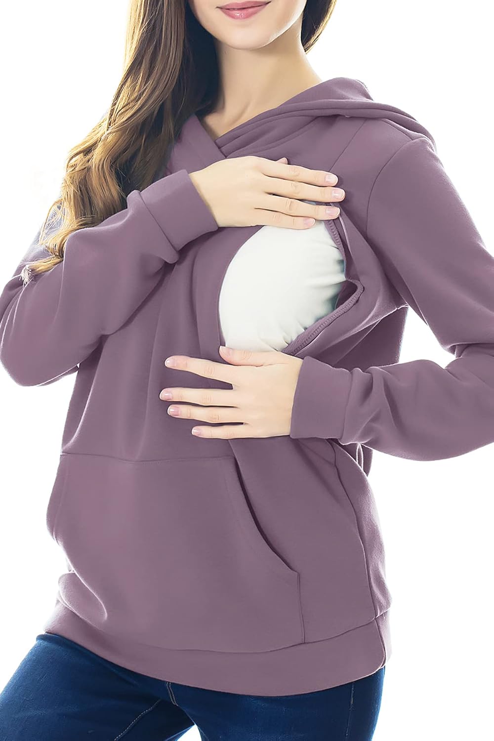Smallshow Stillanzug Mutterschaft Fleece Stillpullover Stilloberteil Umstandsmode Hoodie Sweatshirt