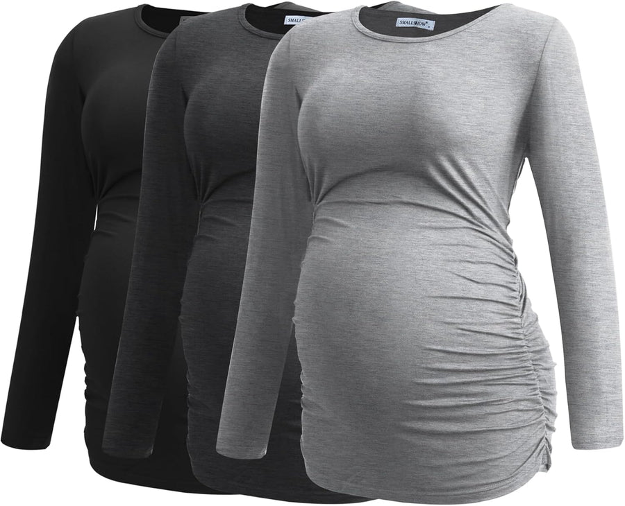 Smallshow Women's Umstandsmode Lange ärmel Umstandsshirt Maternity Tops 3er Pack S Schwarz/Hellgrau/