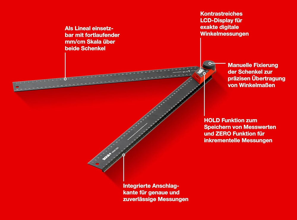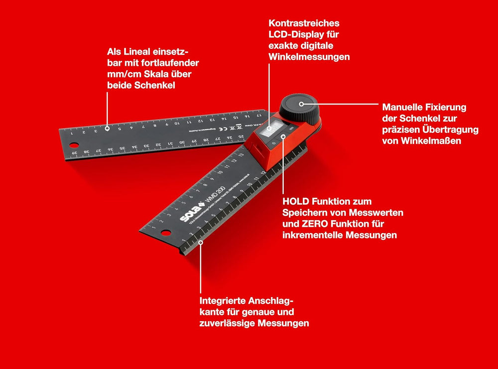 SOLA WMD - Digitaler Winkelmesser - Länge 200/500 mm - Anschlagwinkel mit LCD-Anzeige für exakte Win