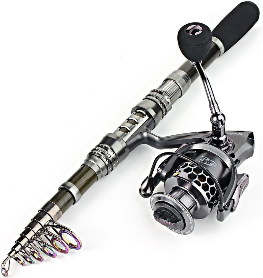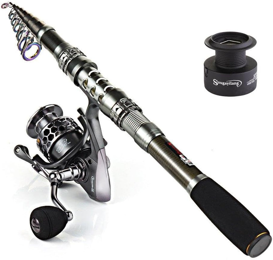 Sougayilang Spinning Angelrute und Spule Combos Tragbare Teleskop-Angelrute Spinnrollen für Reisen S