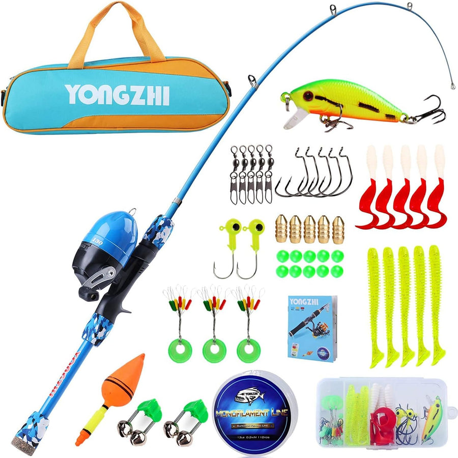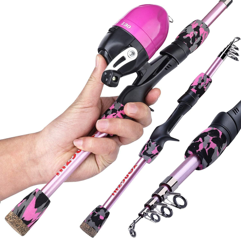 Sougayilang Kinder-Angelruten, tragbare Teleskop-Angelrute und Rolle, mit Angelschnurködern, Spincas