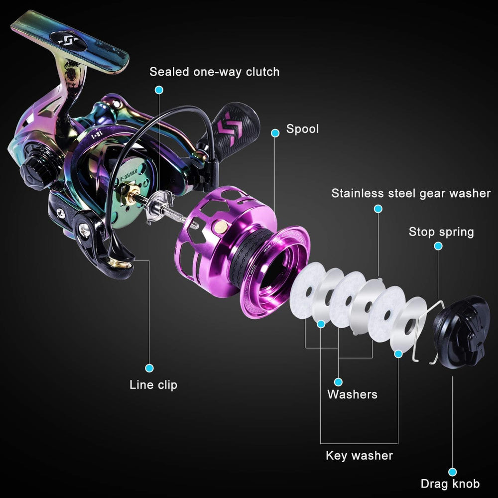 Sougayilang Spinning Angelrolle 6.0:1 Gear Ratio Graphit Rahmen 12 + 1 BB Bunte Angelrolle mit 25 lb