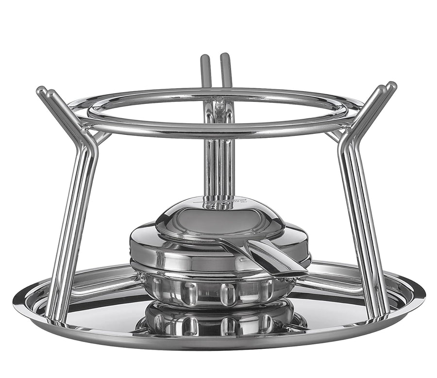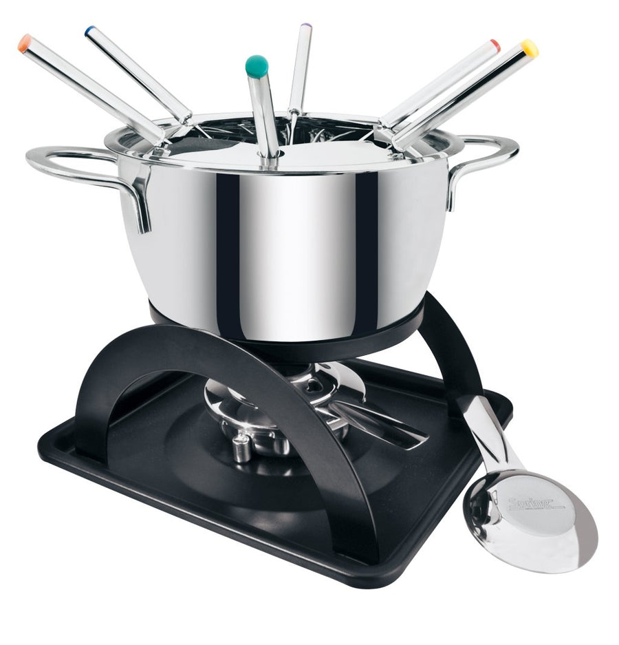 Spring Fondue Set SWISS ECO | aus Edelstahl | Rechaud Brenner | inkl. 6 farbig markierten Fondue Gab