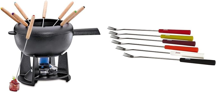 Spring Gusseisen Fondue Set schwarz | Ø 20 cm & 2890260606 Käsefondue-Gabeln Basic bunt 6 Stück, Ede