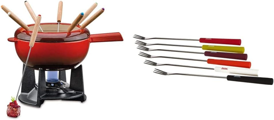 Spring Gusseisen Fondue-Set GRENOBLE rot, Ø 15,5 cm mit 8 Fonduegabeln, Rot
