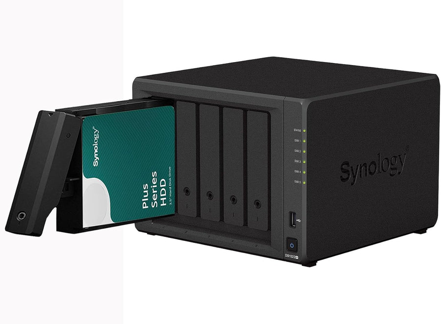 Synology DS1522+ 5-Bay DiskStation NAS AMD Ryzen R1600 8GB Ram 4xRJ-45 1GbE LAN-Port, Bundle mit 5x4