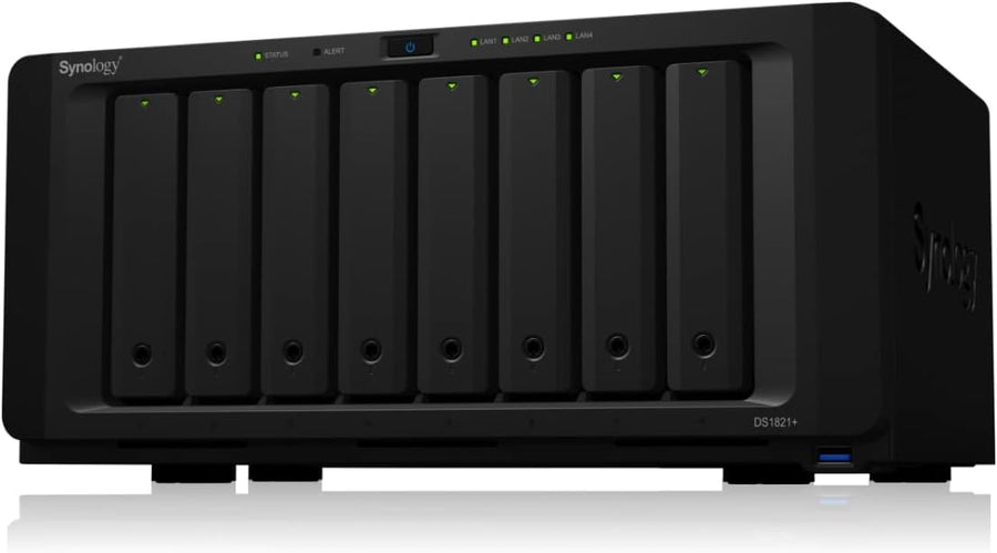 Synology DS1821+ 8-Bay Diskstation NAS (AMD RyzenTM V1500B Quad-Core 2,2 GHz 4 GB DDR4 ECC SODIMM 4