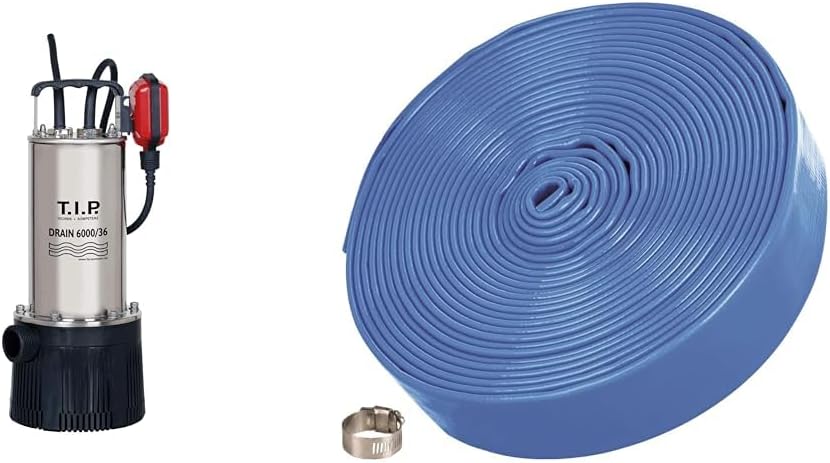 T.I.P. Tauchdruckpumpe Drain 6000/36 + T.I.P. Entwässerungsschlauch / Flachschlauch blau Fördermenge