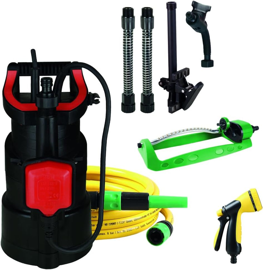 T.I.P. Tauchdruckpumpe - Regenfasspumpe Komplettset (3.200 l/h Fördermenge, bis 1 mm Flachabsaugend,