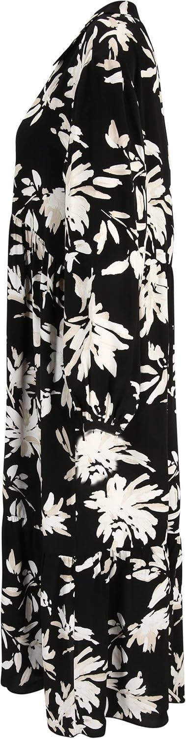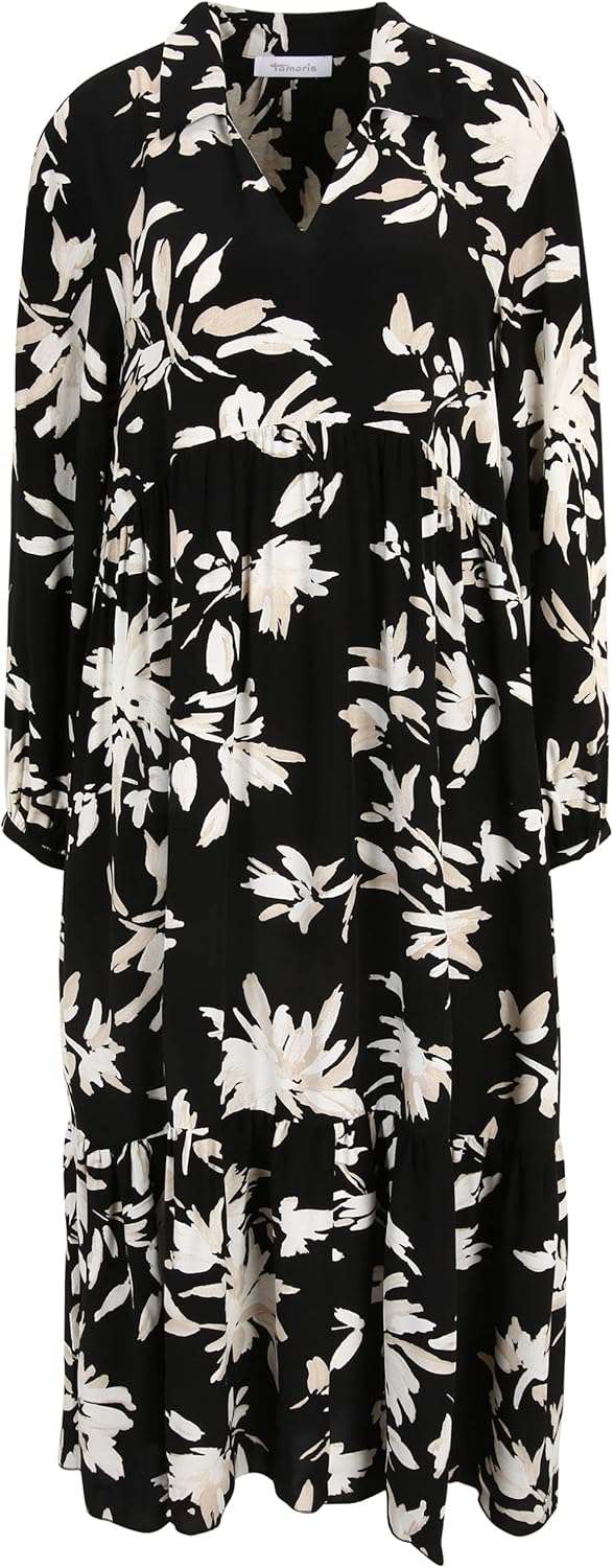 Tamaris Damen AUBURN AOP Langes trapes Kragen Kleid 42 Black Flower Aop, 42 Black Flower Aop