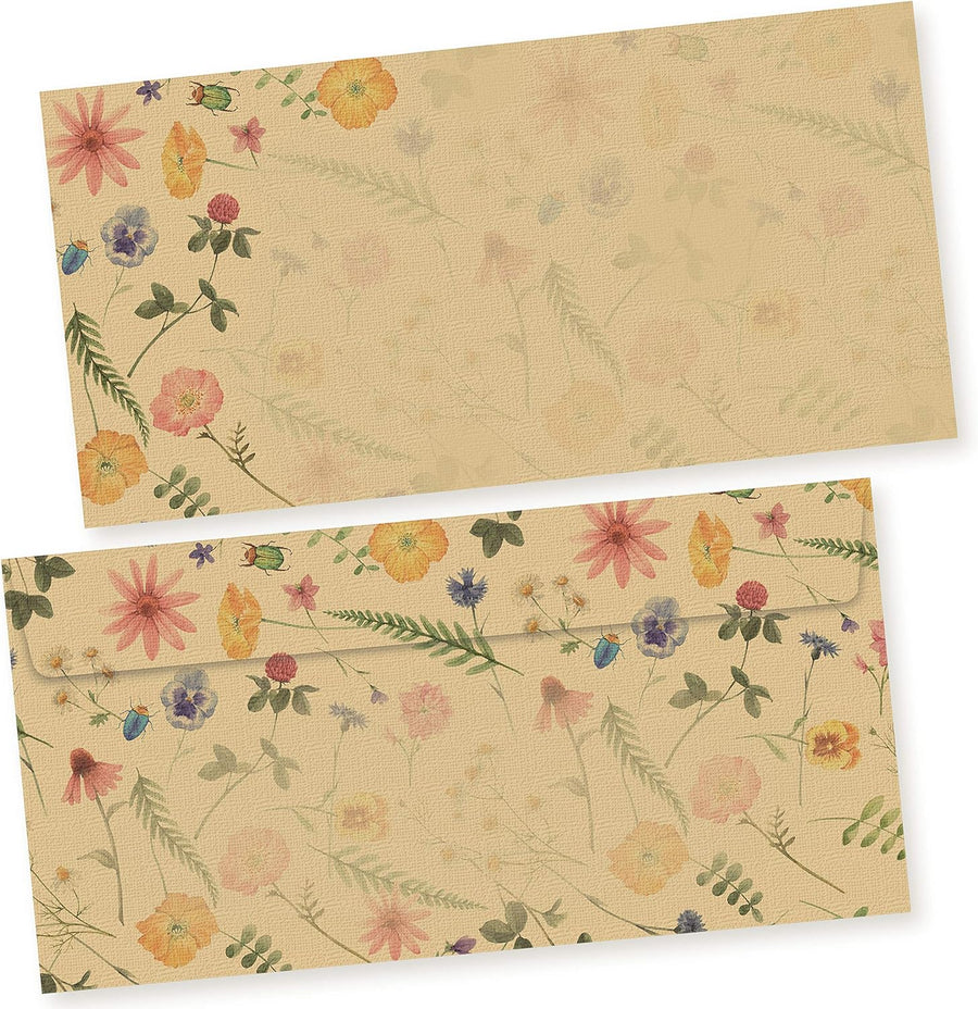 Flora-Natura Briefumschläge Vintage Blumen Floral 250 Stück DIN lang Umschläge selbstklebend ohne Fe