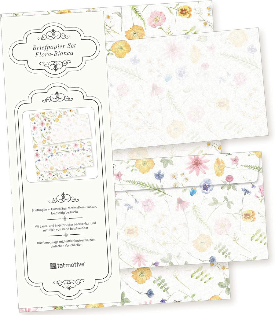Flora Bianca Briefpapier mit Umschlag Set Vintage Blumen 250 Sets Papier DIN A4 beidseitig floral Na