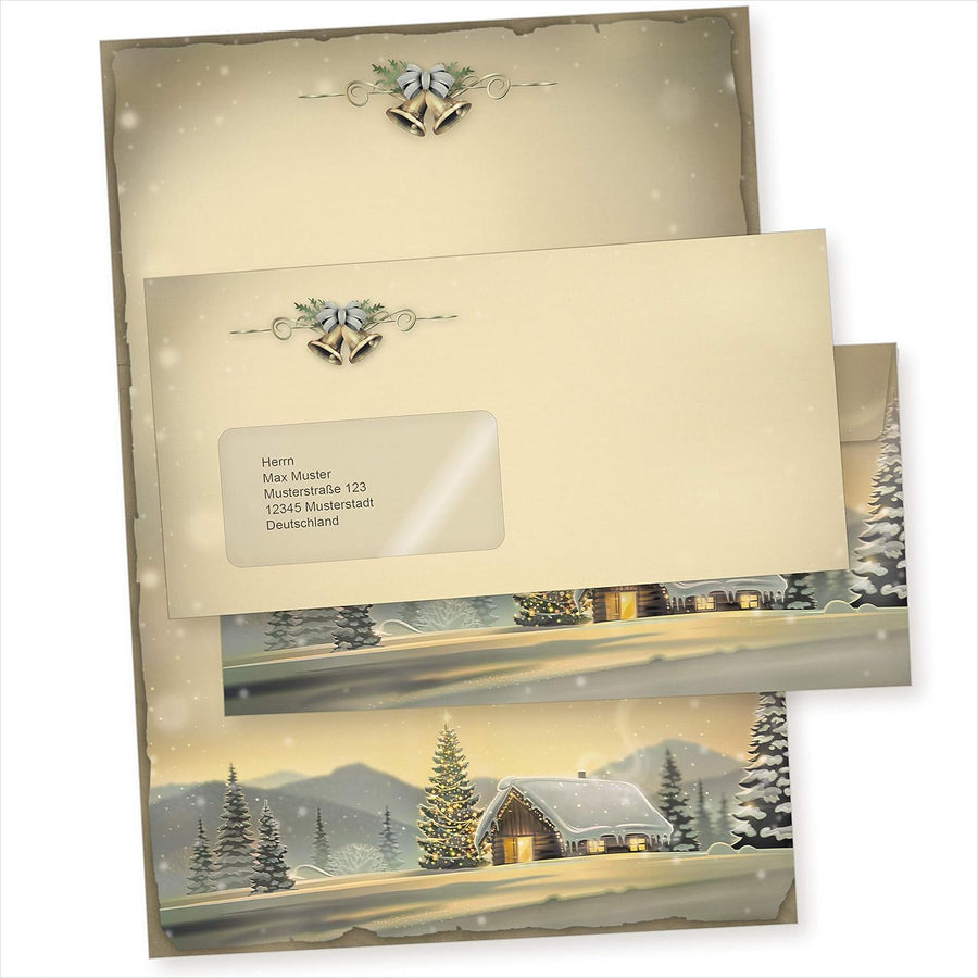Glöcknerhütte 25 Sets Weihnachtsbriefpapier mit Fensterumschlag Briefpapier Weihnachten mit Umschlag