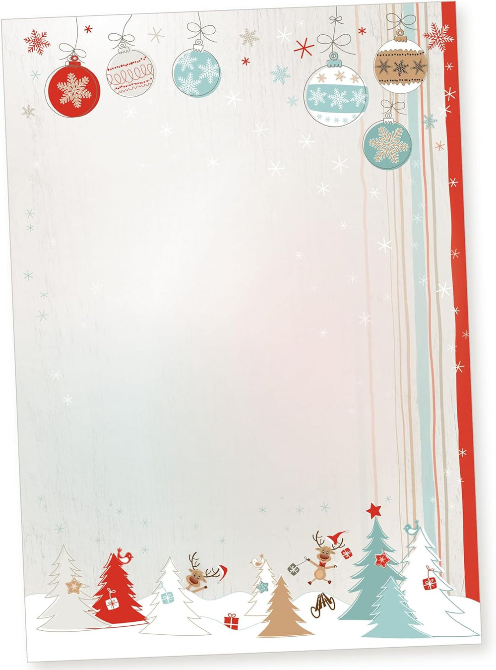 Joulujuhla 25 Sets Weihnachtsbriefpapier mit Umschlag ohne Fenster Weihnachtspapier A4 Briefpapier W
