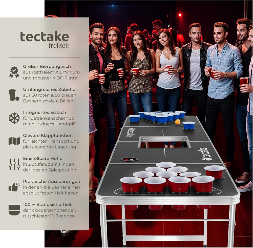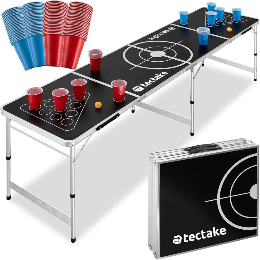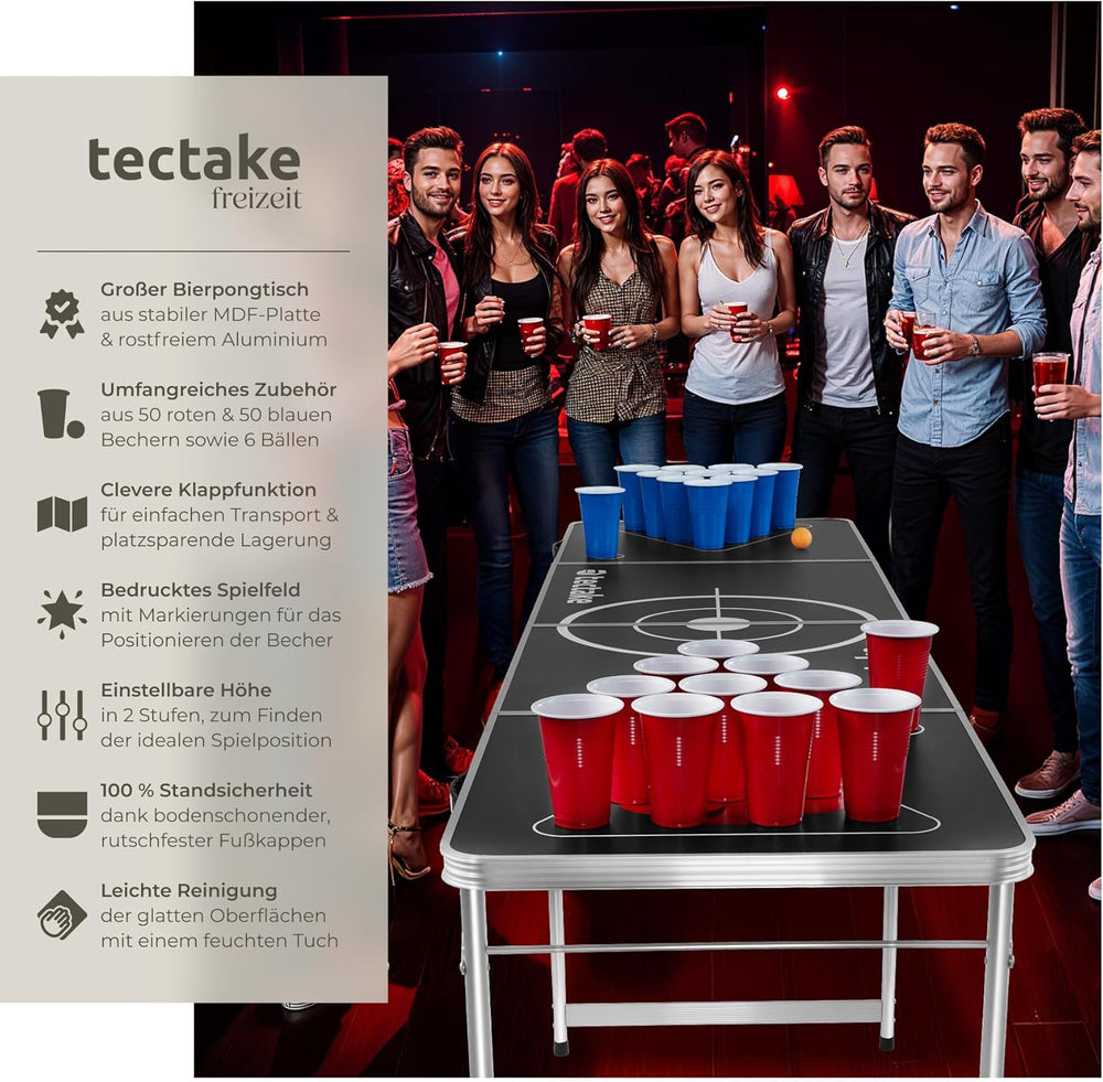 tectake® Bierpong Tisch, Beer Pong Tisch, inkl. 100 Becher (50 rot & 50 blau) und 6 Bälle, höhenvers