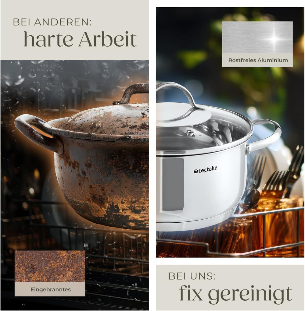 tectake® 9-tlg. Topfset, Edelstahl Kochgeschirr, Töpfe Set mit Deckel, Kochtopf Set für Induktionsko