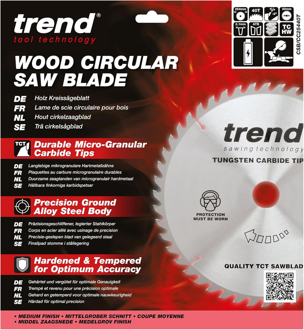 Trend CraftPro Negativhaken Querschnitts-TCT-Sägeblatt, 254mm x 40 Zähne x 30mm Bohrung, Hartmetallb