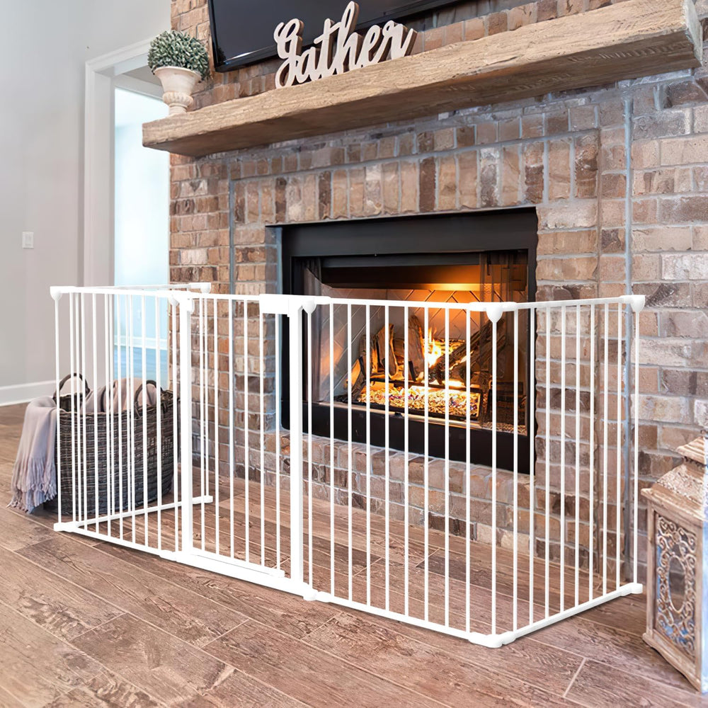 Tubiaz Kaminschutzgitter mit Tür 310cm, Metall Ofenschutzgitter, Kinderschutzgitter 5-Elementen (75x