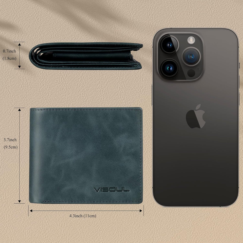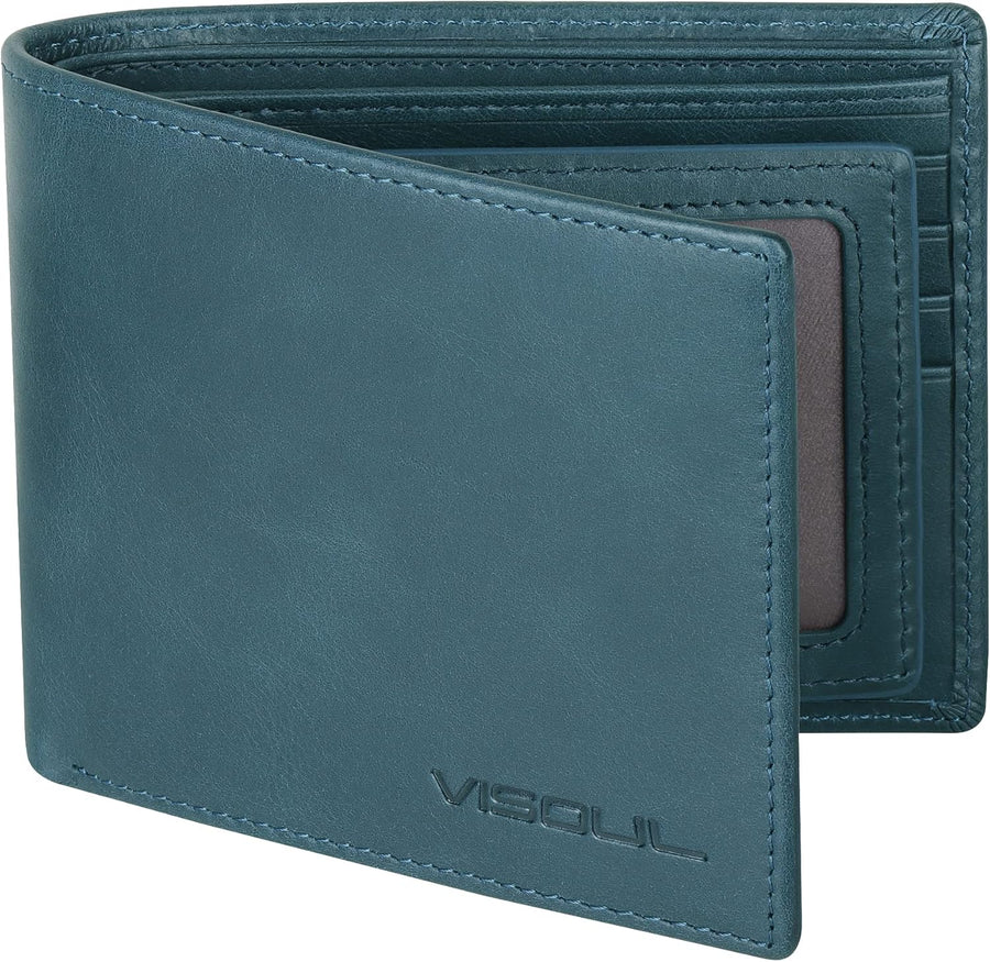VISOUL Premium Brieftasche Echtleder/Italienisches Leder mit RFID-Schutz, XL Geldbörse für Herren Bl