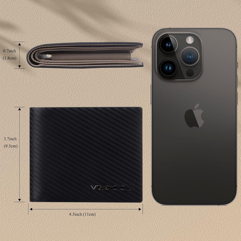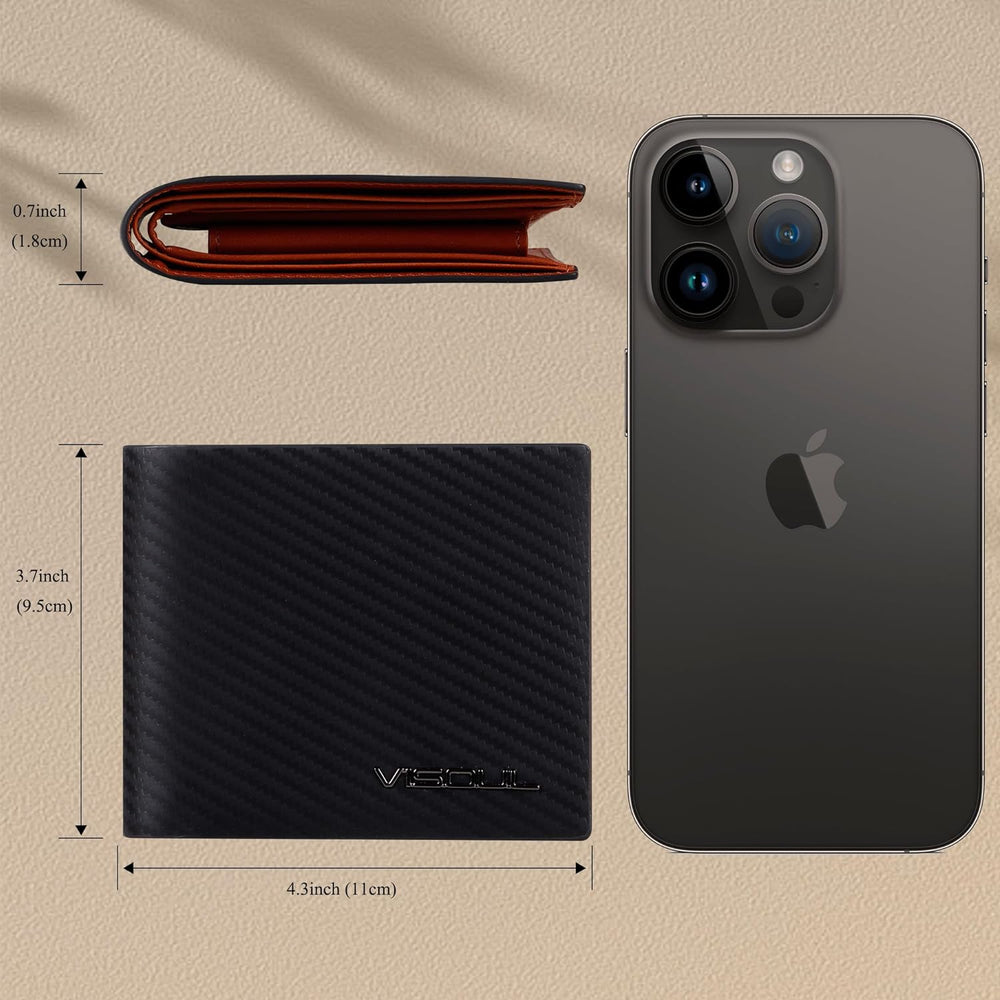VISOUL iPhone 14 Pro Max Hülle, Handyhülle [100% Carbon Leder] [RFID Schutz] [Schützt vor Stoss] [St