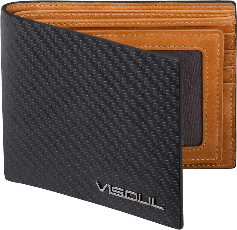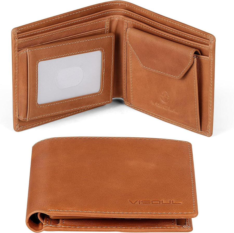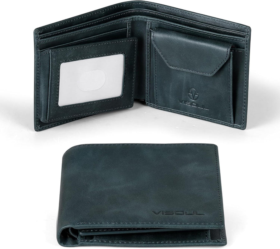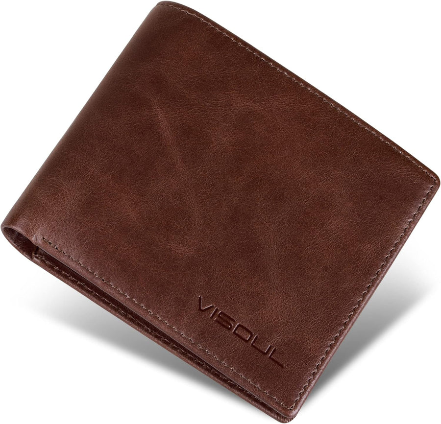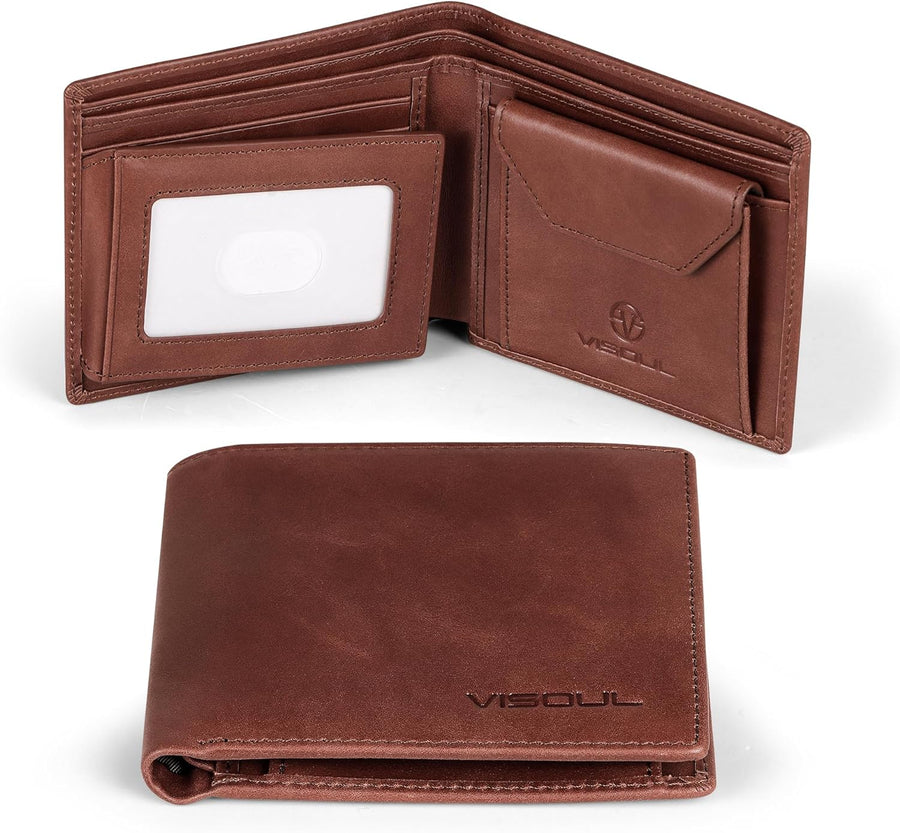 VISOUL Leder Geldbörse Herren mit ID-Fenster/Münzfach & RFID Schutz I Echtleder Geldbeutel für Männe
